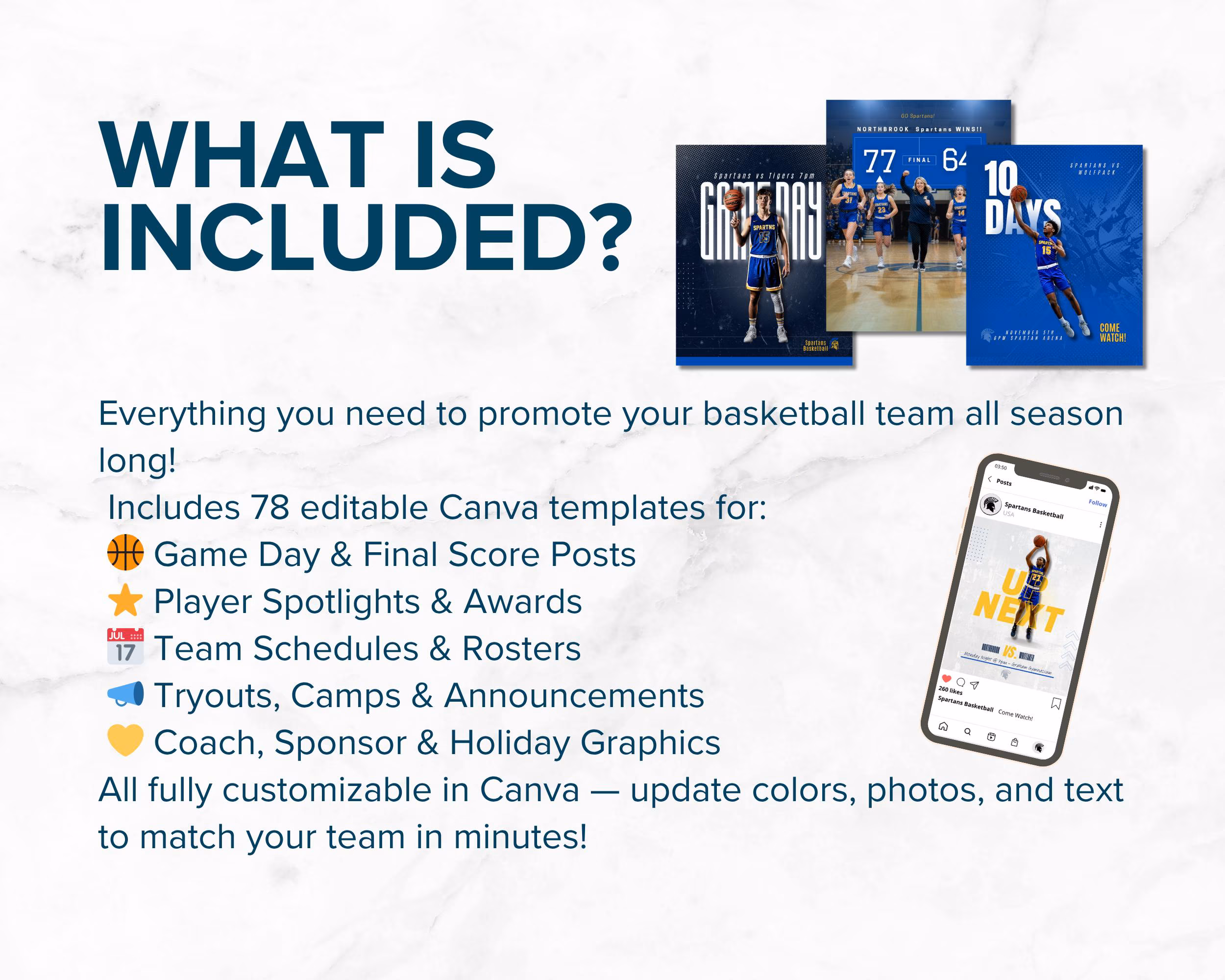 Basketball Social Media Templates for Canva | 78 Editable Game Day & Player Posts