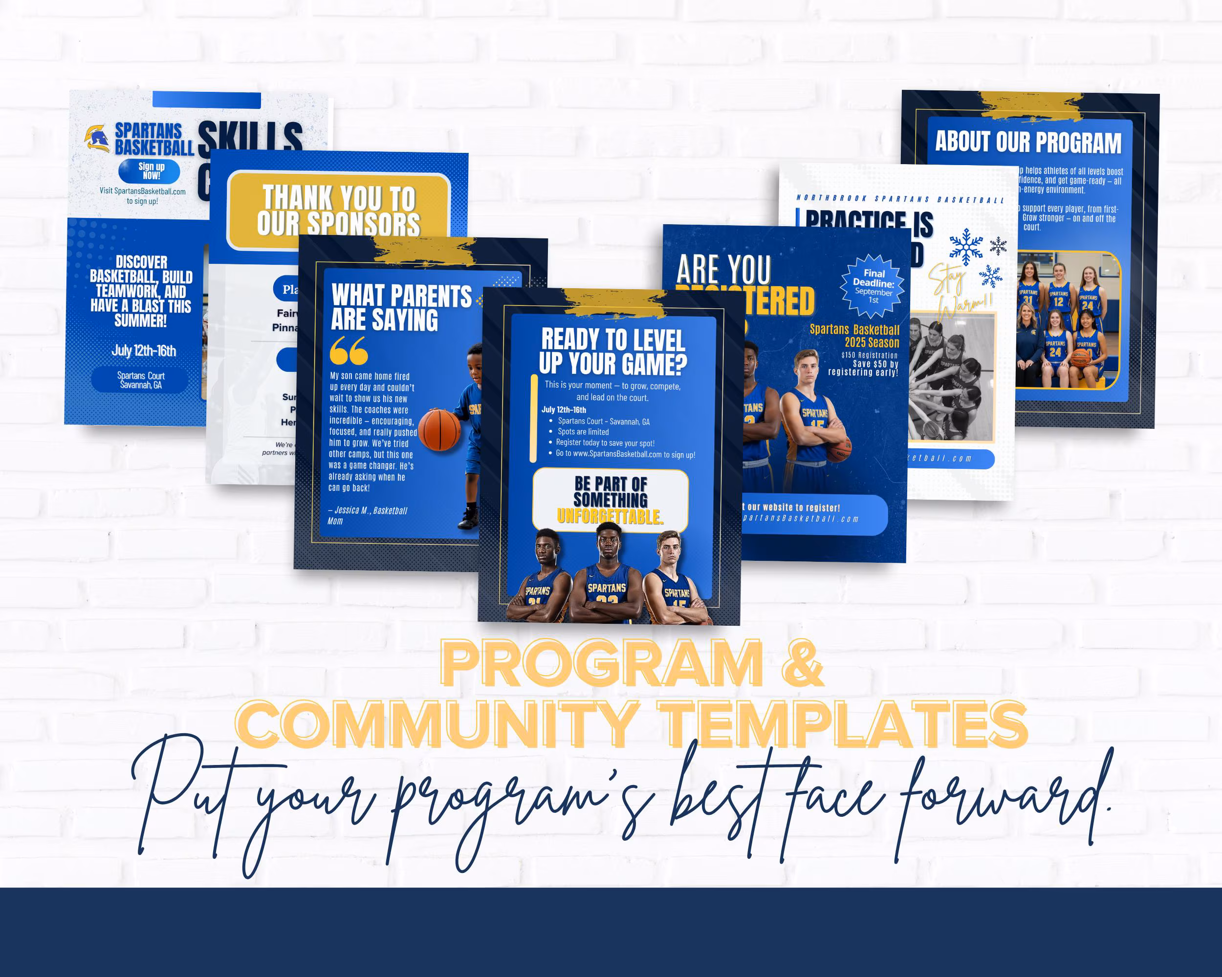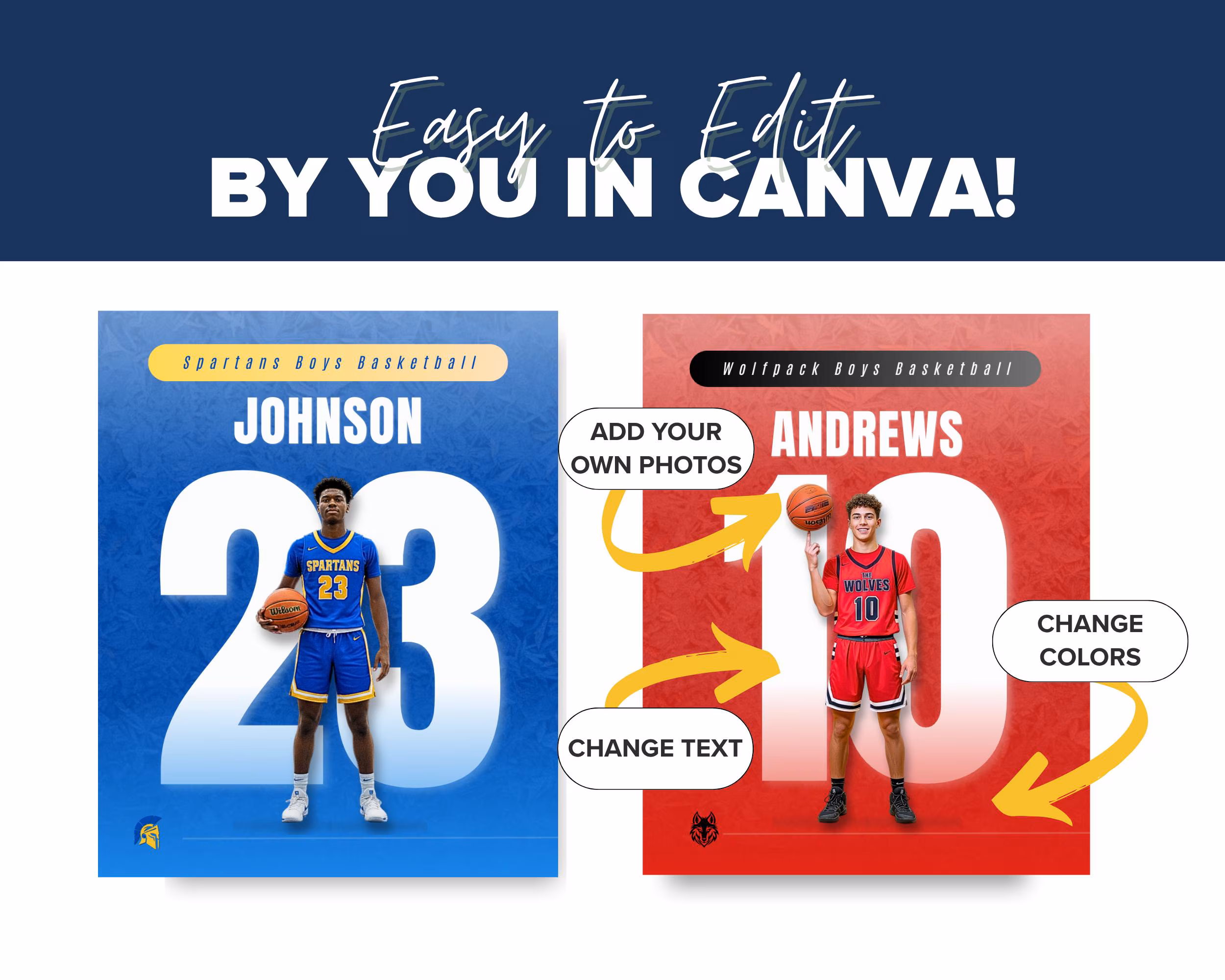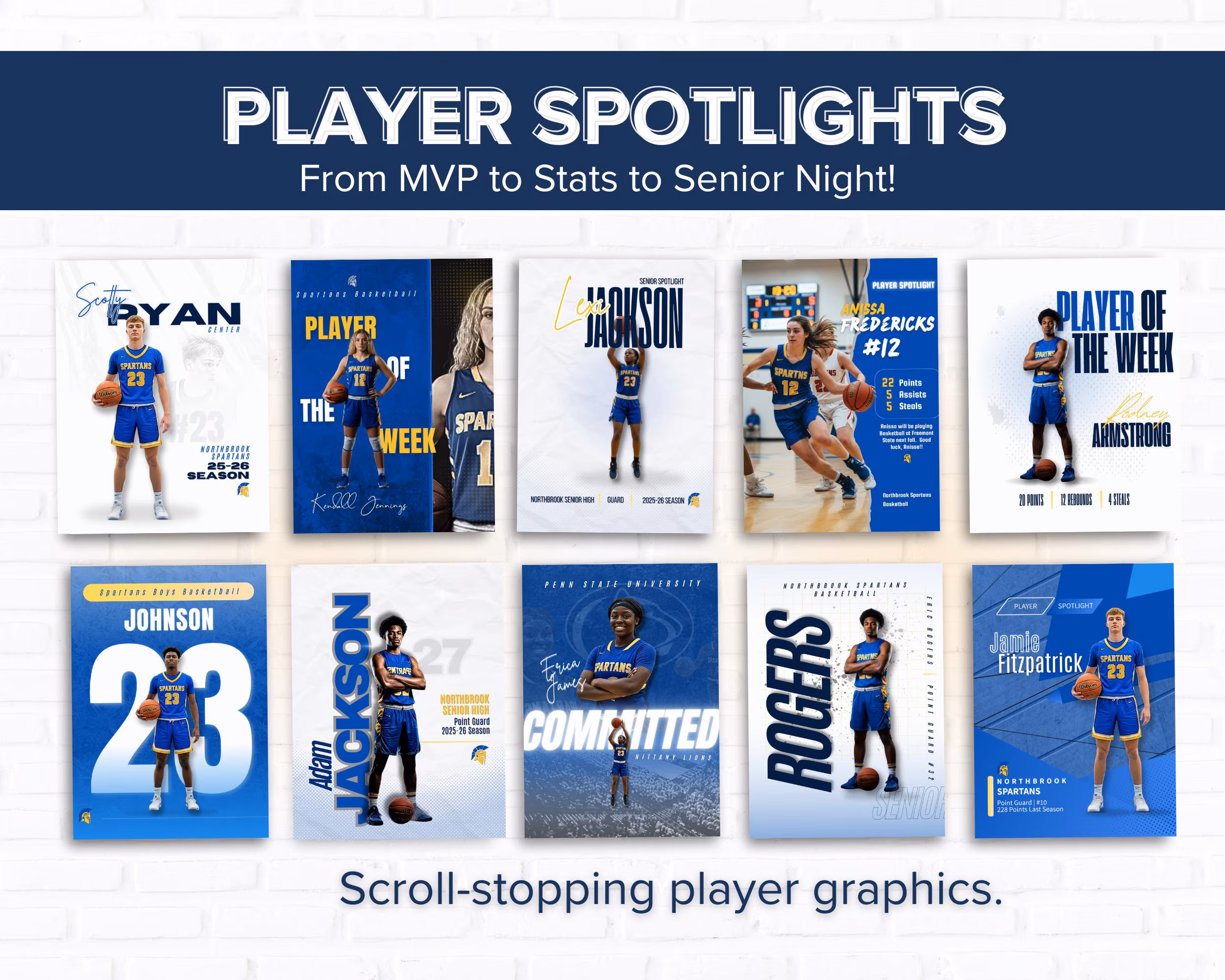 Look like the pros: Clean, modern layouts inspired by college and pro basketball graphics.