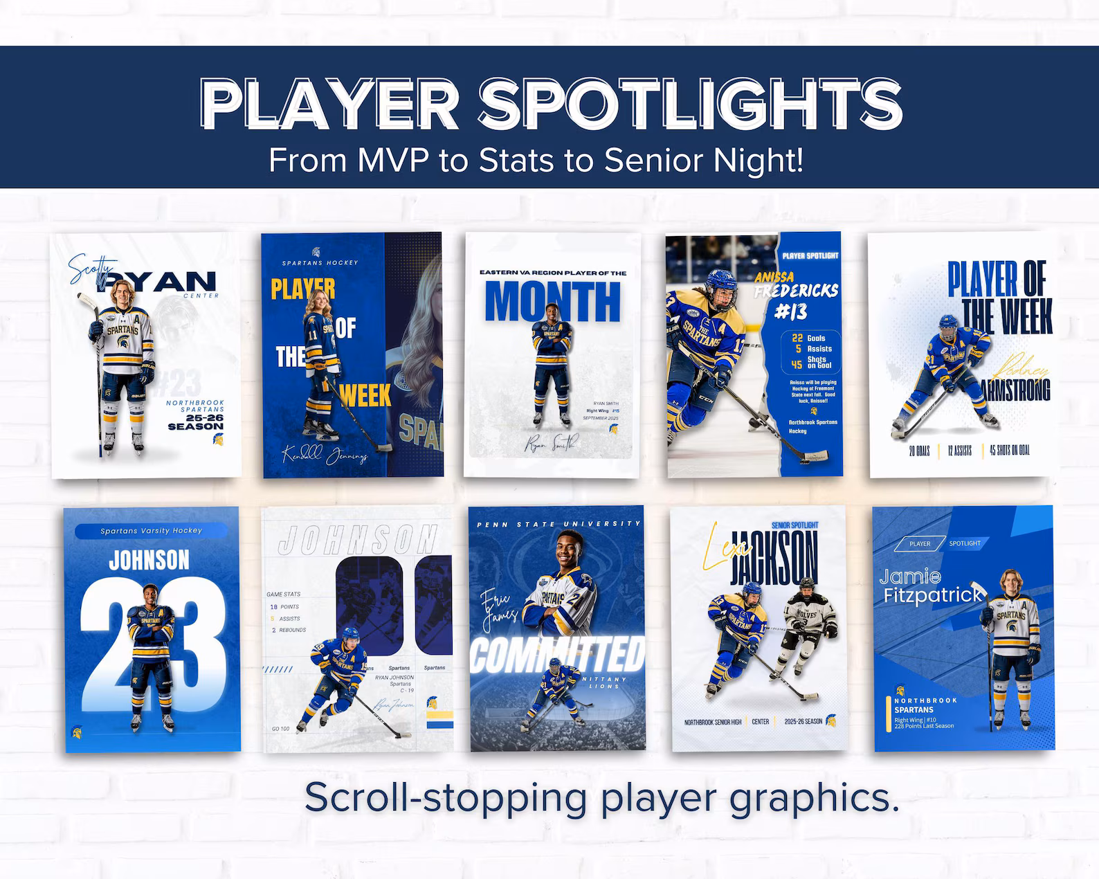 Perfect for coaches, team managers, team moms, booster clubs, social media managers, and ADs who want consistent, on-brand graphics without spending hours designing from scratch.