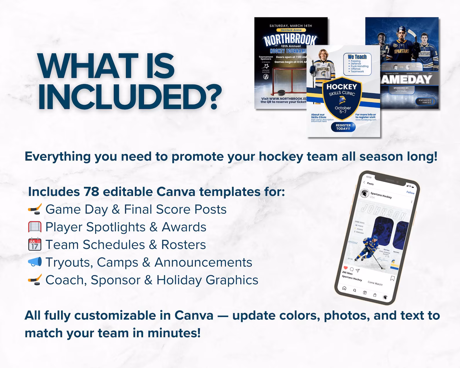 Hockey Social Media Templates for Canva – 78 Editable Posts for Your Season